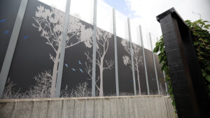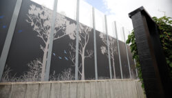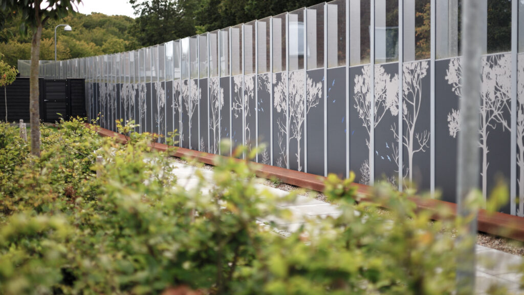 Ved AAB Silkeborgs lejeboliger på Hjejlevej har vi, i samarbejde med Sweco arkitekterne, udformet og monteret grafik til støjværnet omkring bebyggelsen.