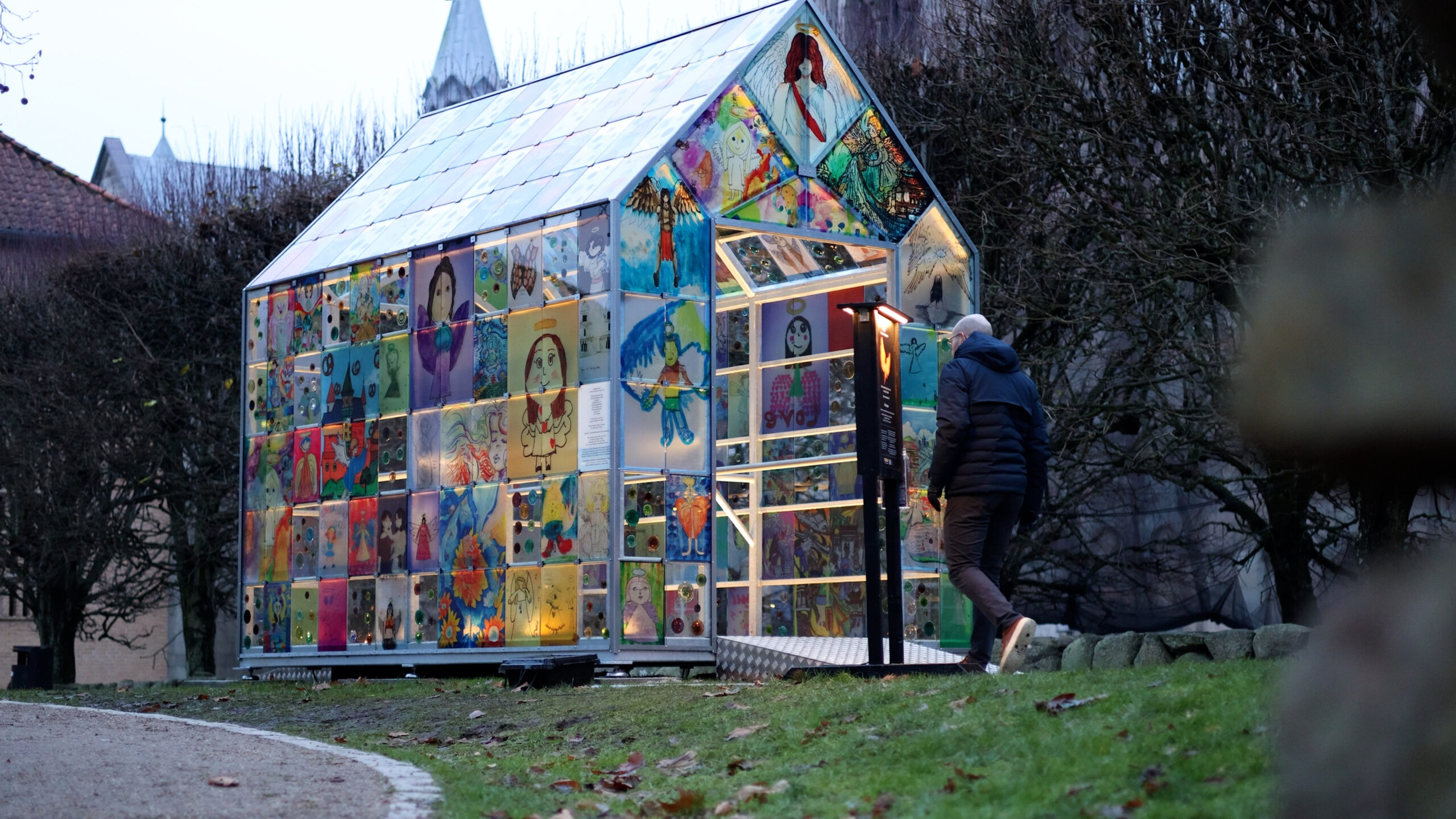 Engle tegnet af børn fra hele verden er blevet til en lysende portal ved domkirken i Viborg. Et projekt, hvor kreativitet, håndværk og fællesskab går hånd i hånd.